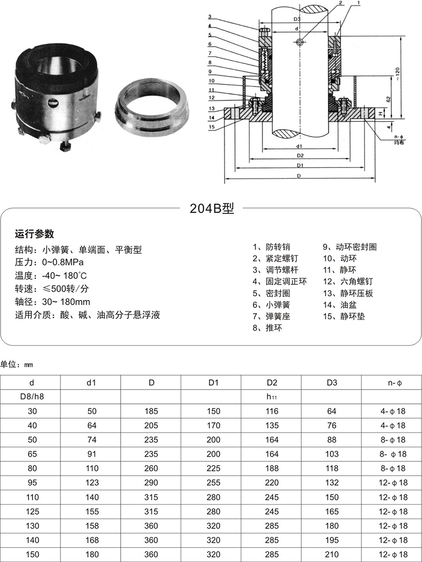 為改善授拌軸支承穩定性,降低密封腔的工作溫度,提高使用性能,可根據攪拌軸直徑d及對應的標準系列,選用對應的CT調溫器可與機封做成一體。安裝尺寸與對應的機械密封一致。